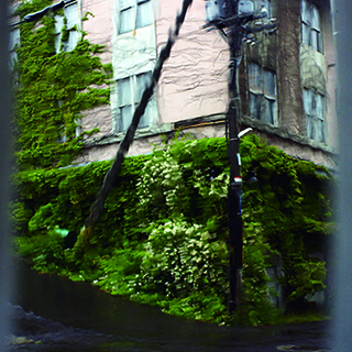窓を伝う雨にゆらめく景色を、内側から撮影。(小樽市堺町)